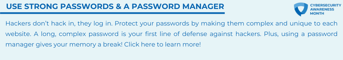 October is Cybersecurity Awareness Month. Please take note of the following-